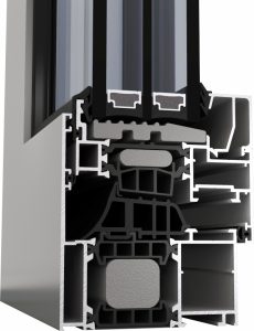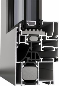 aluminijumskih profila sa termičkim prekidom, specijalno projektovanih za izradu elemenata prozora i vrata sa ugradnom dubinom štoka od 77mm. Sistem je dizajniran tako da