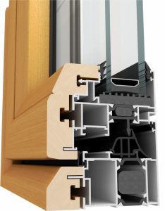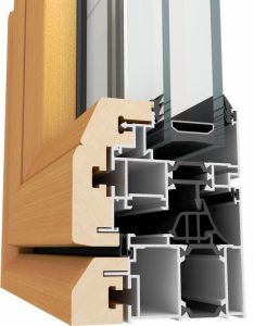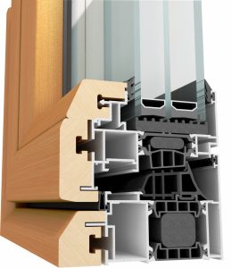 Drveni profili su postavljeni na aluminijumsku noseću konstrukciju poliamidnim patent spojnicama koje dozvoljavaju međusobnu dilataciju različitih materijala. Drvena obloga poboljšava termička i zvučna svojstva elementa. Dizajn drvene obloge je originalan i estetski jedinstven. - Sistem omogućava ugradnju namenskog Tehnomarket okova u EURO 1 žljeb ili Eugen-Notter okova bez vidljivih šarki.