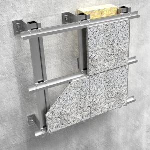 Sistem aluminijumske podkonstrukcije koji je namenjen prihvatanju ravnih ploča, najčešće od prirodnog kamena, sigurno fiksiranih horizontalnim profilima delimično vidljivim sa lica fasade u zoni horizontalnih fuga, koji se u zavisnosti od zahteva u projektu mogu plastificirati u traženoj boji po RAL ton karti. Postupak ugradnje je suv, uz jednostavnu montažu i kompletnu radionièku pripremu. Debljina fasadne obloge može biti od 10-40mm u zavisnosti od strukture materijala.