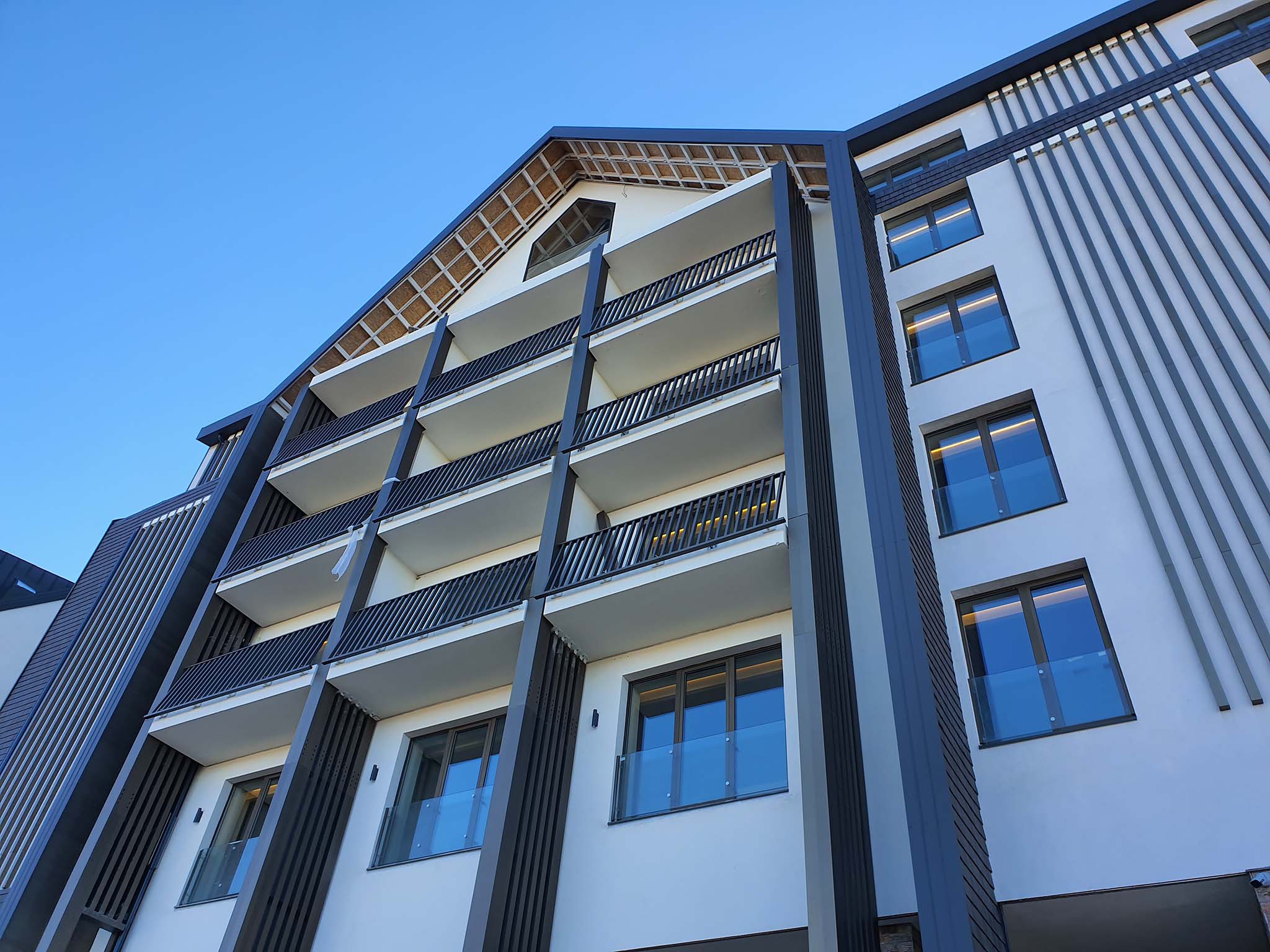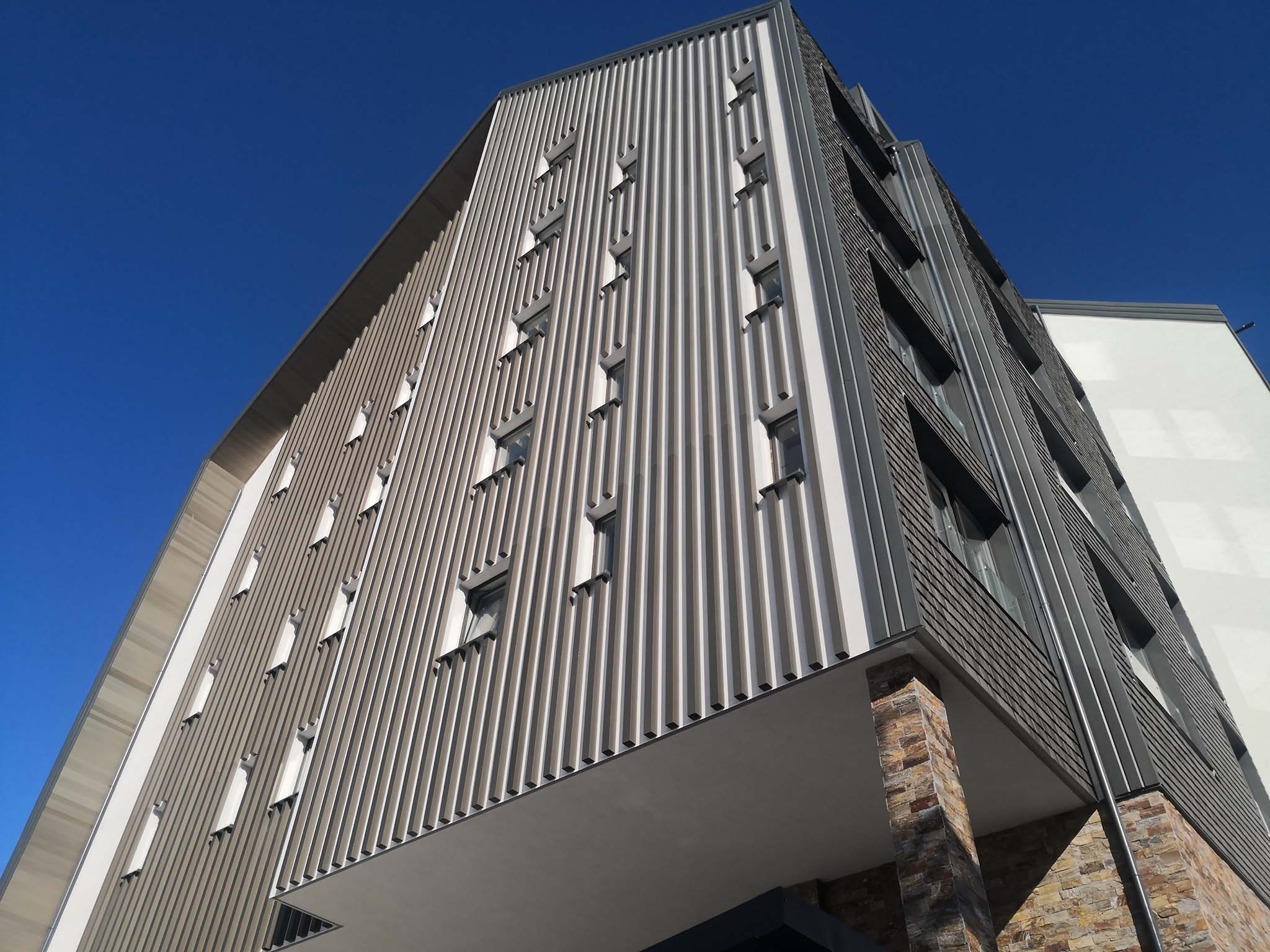 Fasada objekta rešena je na tehnički visokom nivou, uz primenu Tehnomarket VENT Rivet sistema podkonstrukcije ventilisane fasade prilagođene Knauf Aquapanel pločama preko kojih je apliciran klasičan završni sloj, kao i kamen u ostalim zonama kako bi objekat dobio u potpunosti autentičan izgled. Ovo rešenje nudi sve prednosti ventilisane fasade – odlične izolacione sposobnosti, provetrenost fasadnog sklopa, brzu ugradnju i izuzetno visok kvalitet i uniformnost gotovih fasadnih površina uz izgled klasičnog planinskog objekta koji se savršeno uklapa u prirodno okruženje.